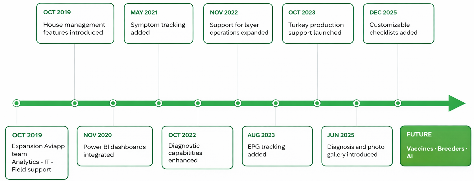 For over a decade, Aviapp® has stood for innovation, reliability, and dedication. What started as a digital solution has grown into a great poultry management platform, continuously evolving to meet the changing needs of the customer. Over the years, important milestones have helped shape Aviapp® into the platform it is today.